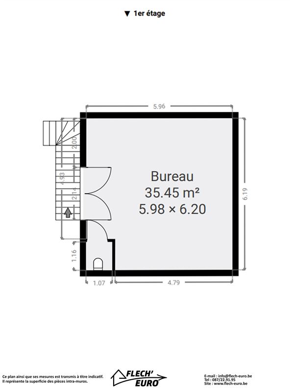 Bureau (1er étage) : 400€ HTVA -> 484€ TVAC
