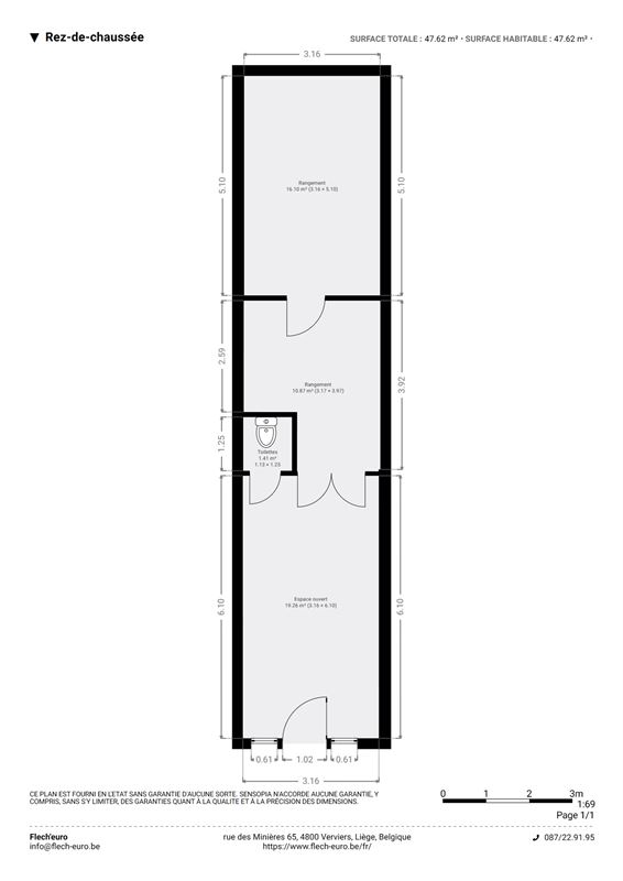 VERVIERS, idéalement situé sur un axe routier principal, cette surface commerciale d'un total de 47.64m² vous offre de multiples possibilités. Cette dernière est composée d'une surface de vente, un WC et deux réserves en enfilade.