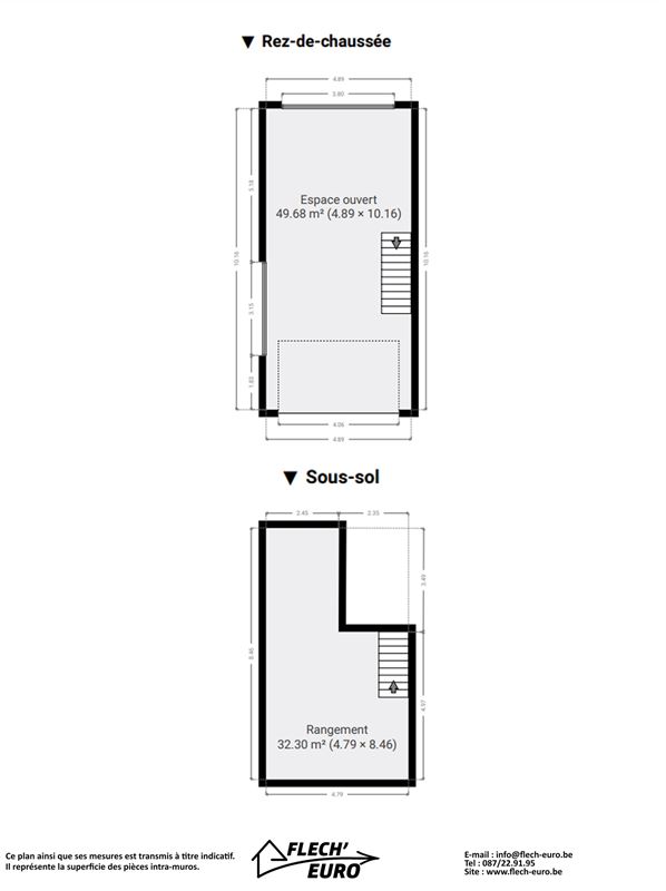 - Garage d'une largeur de 4.89 m sur 10.16 m de profondeur soit 49.68 m²