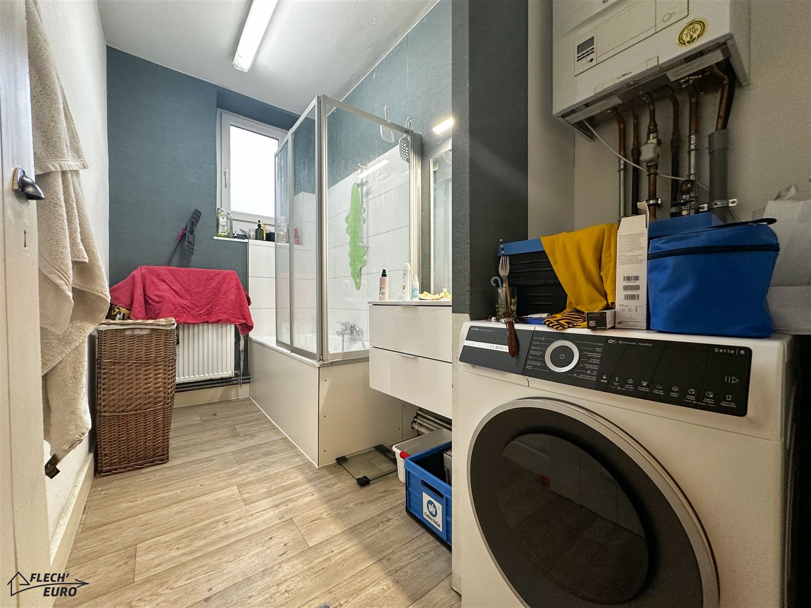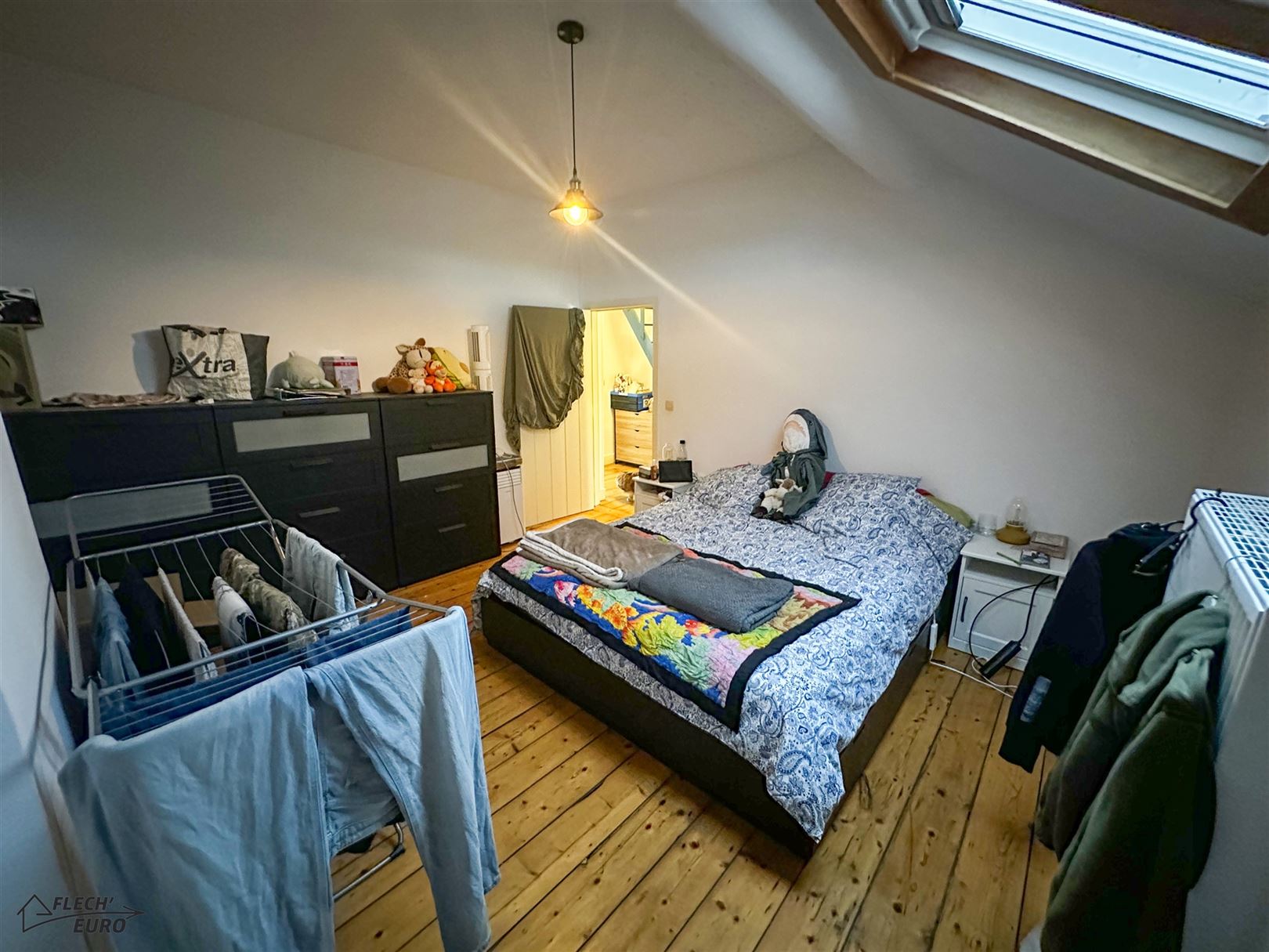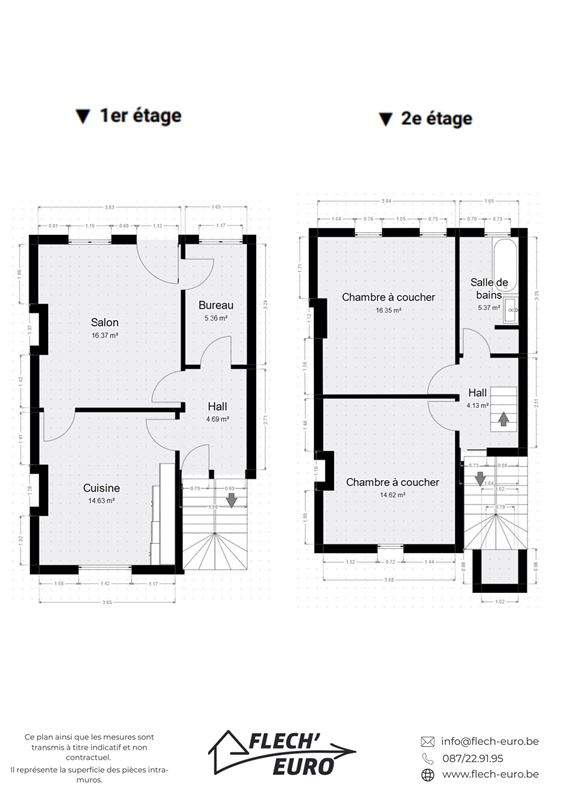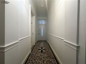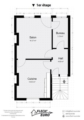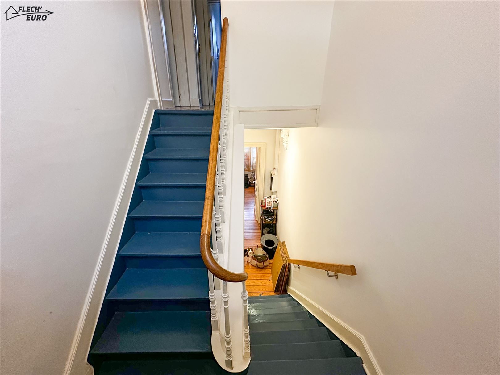 Dans une maison de maître, duplex rempli de charme, alliant parquet et moulures. Il se compose, au premier étage, d'un hall d'entrée, une cuisine hyper-équipée (frigo, four, taque de cuisson, hotte, évier, lave-vaisselle), un salon et un bureau/débarras. Au deuxième étage, d'un hall de nuit, deux grandes chambres à coucher et une salle de bain ainsi qu'un WC privatif à l'entresol. Des caves communes et un grenier privatif viennent compléter le bien et offrent un important volume de rangement. Le bien bénéficie de compteurs séparés, de châssis double vitrage en PVC & bois dans l’ensemble du logement et d’un chauffage central au gaz.